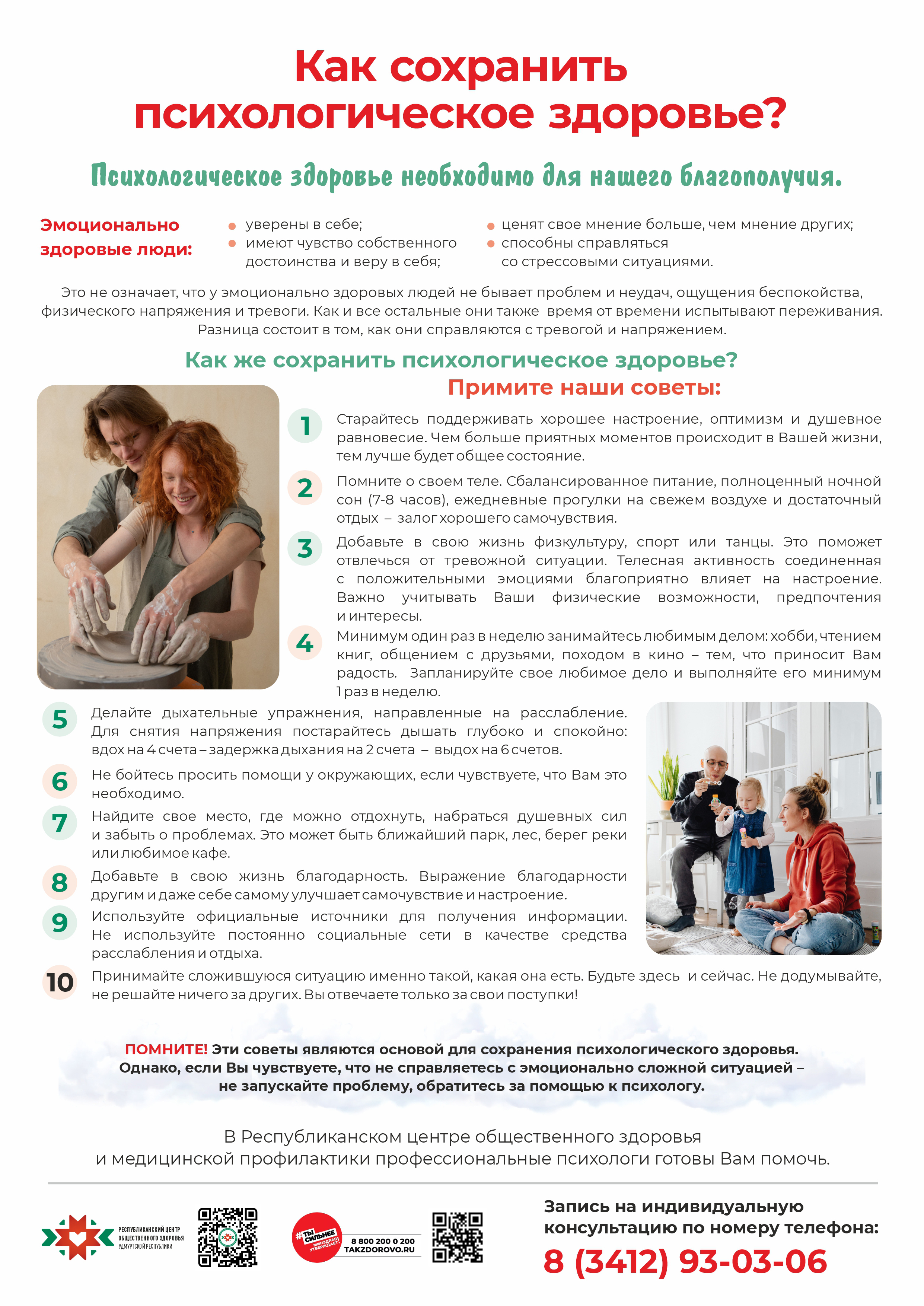 В рамках реализации Плана проведения региональных тематических мероприятий по профилактике заболеваний и поддержке здорового образа жизни в соответствии с письмом Министерства здравоохранения Российской Федерации и распоряжением Министерства здравоохранения Удмуртской Республики в период с 06.10.2025 по 12.10.2025 Неделя сохранения психического здоровья (в честь Всемирного дня психического здоровья 10 октября)